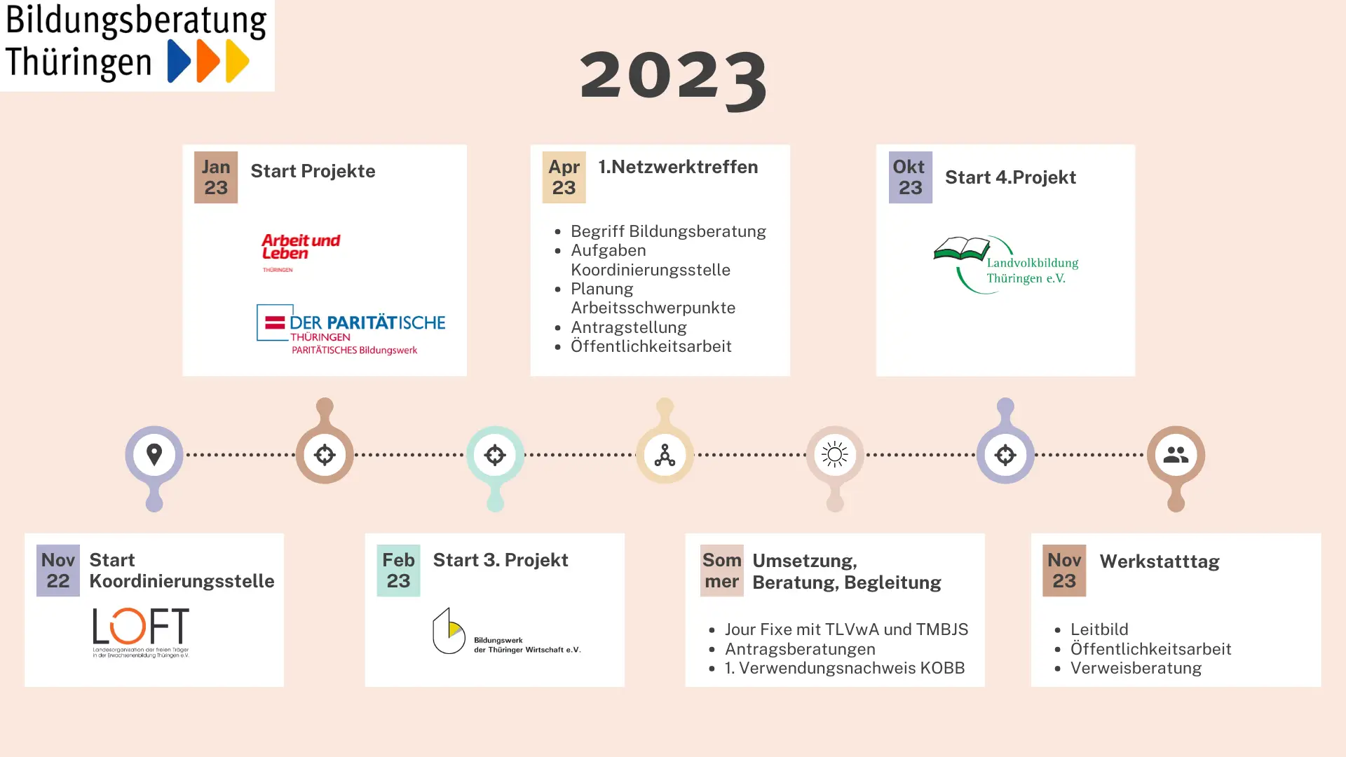2023 nehmen vier Bildungsberatungsstellen ihre Arbeit auf. Inzwischen sind es 10 Anlaufstellen für Bildungsberatung in Thüringen.
